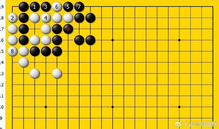 面对黑棋3的冲,白棋4如果在二线粘来连接呢?黑棋5会继续一线扳,来紧整块白棋的外气,当白棋6继续一线立,来分断黑棋的时候,黑棋7会继续紧整块白棋的外气,同样形成了黑棋的有眼杀白棋的无眼!黑棋对杀成功!